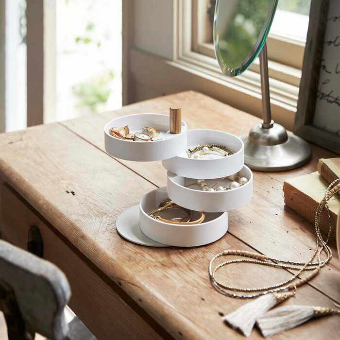 天然木の軸を中心に360°、トレーが自在に回転するアクセサリー収納。