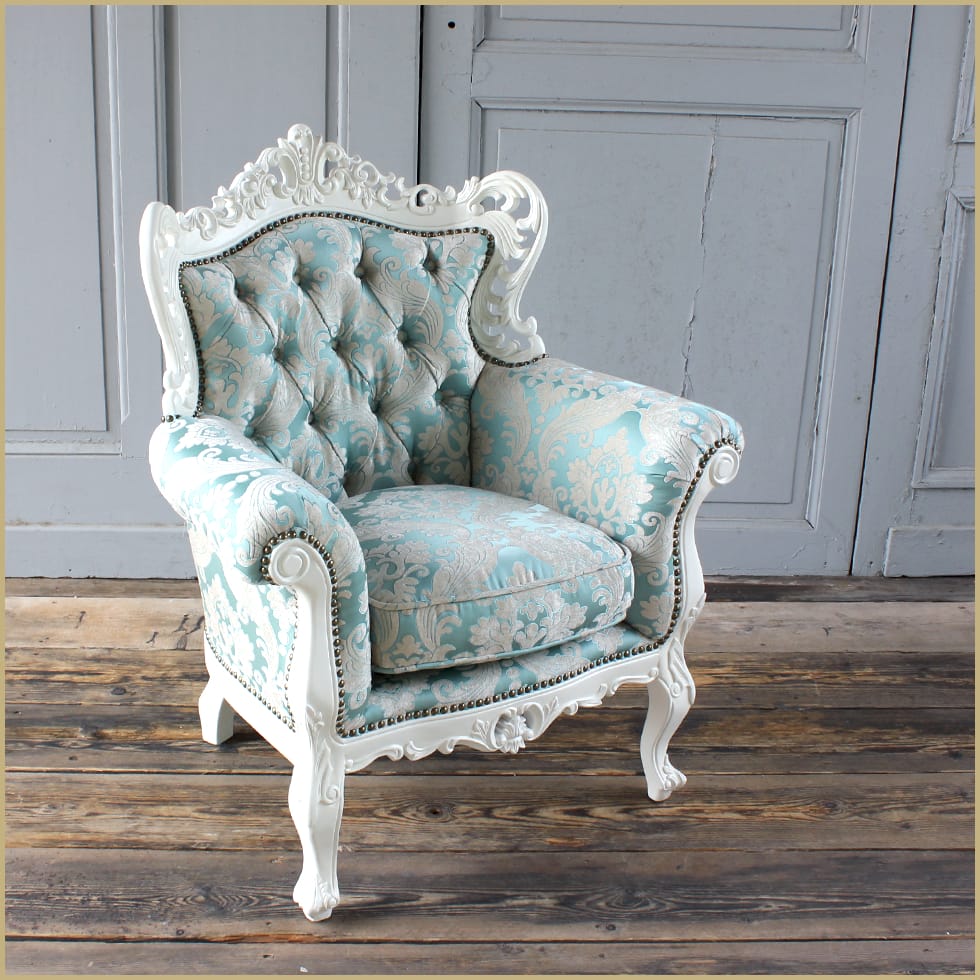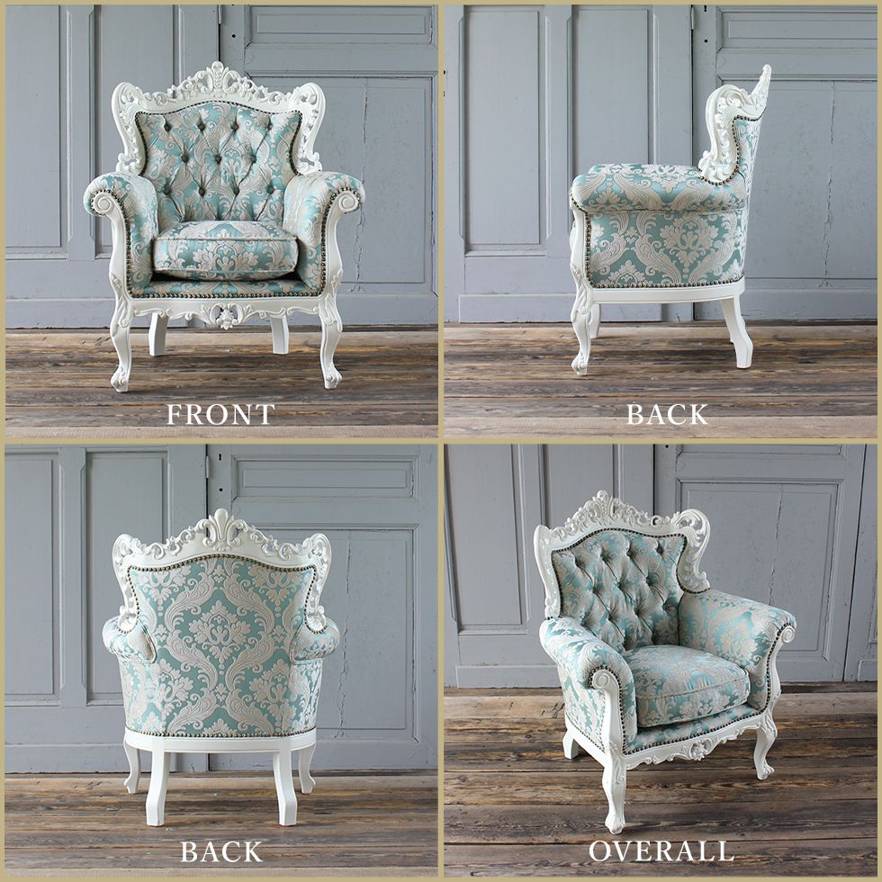 ◇納品先の一例 アパレル 服飾店 ヘアーサロン バー レストラン 飲食店 ホテル ラウンジ 応接 応接間 歯科医院 歯医者 待合 待合室 美容室 ショップ ネイル ネイル サロン エステ エステサロン アイラッシュ アイラッシュサロン マツエク サロン プリザーブドフラワー教室 ポーセラーツ教室 自宅サロン など多数商品名シンフォニーソファ 1人掛け エメラルド品番1006-1-sh-18f66b受注生産規約サイズ送料について↓クリックで拡大表示 コメント憧れのヨーロピアンソファをさらに手軽にお求めやすく価格と大きさをダウンサイジングしたコンパクトソファ シンフォニーシリーズロココ様式を復刻する為こだわったハンドメイド軽快な透かし彫刻に宿る機械化できない職人の息づかい丁寧に手作業で打ち込まれた鋲の数々クオリティはそのままに日本の住空間にあったサイズを再構築6畳間が応接室になるほどのコンパクトサイズを実現しましたクッションにはソファに最適のフェザーを詰め込みまるで包み込まれるような座り心地にアンティークのプロが本物にこだわったリプロダクトソファご自宅、店舗様にも必ず気に入って頂けるちょうどいいが詰まった最適なヨーロピアンソファです